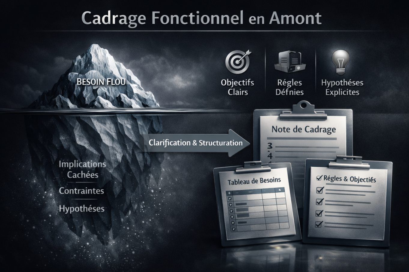 (notamment sur la rédaction des spécifications fonctionnelles, la structuration des tests et le suivi des travaux)