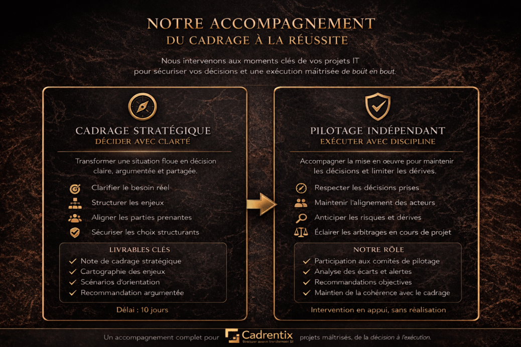 Cet accompagnement peut inclure une implication opérationnelle sur les phases de mise en œuvre lorsque le contexte le nécessite